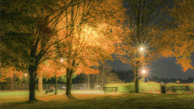 A couple cuddles on an autumn Saturday night. Roughly 50 feet away is a car in a parking lot blasting its stereo. Welcome to Olympia, Washington — a land of many contrasts (Wikipedia, 2020).