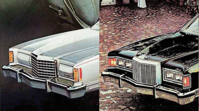 Now let’s compare Chrysler’s approach with the differentiation between the 1977 Ford Thunderbird and its corporate sibling, the Mercury Cougar XR-7.
