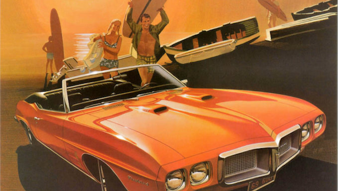 So depending who you hung out with, a cool car could be anything from a brand-new Pontiac Firebird TransAm with its famous “Screaming chicken” hood decal to an old VW Microbus hand-painted with psychedelic colors.