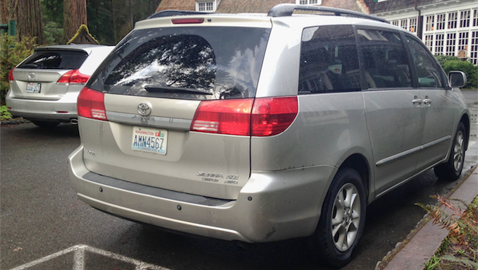 The above photograph shows the beginning of Toyota’s embrace of sci-fi styling. In the foreground, the second-generation Sienna minivan (which was produced from 2003 to 2009) had simple but attractive styling (Wikipedia, 20121a).ย